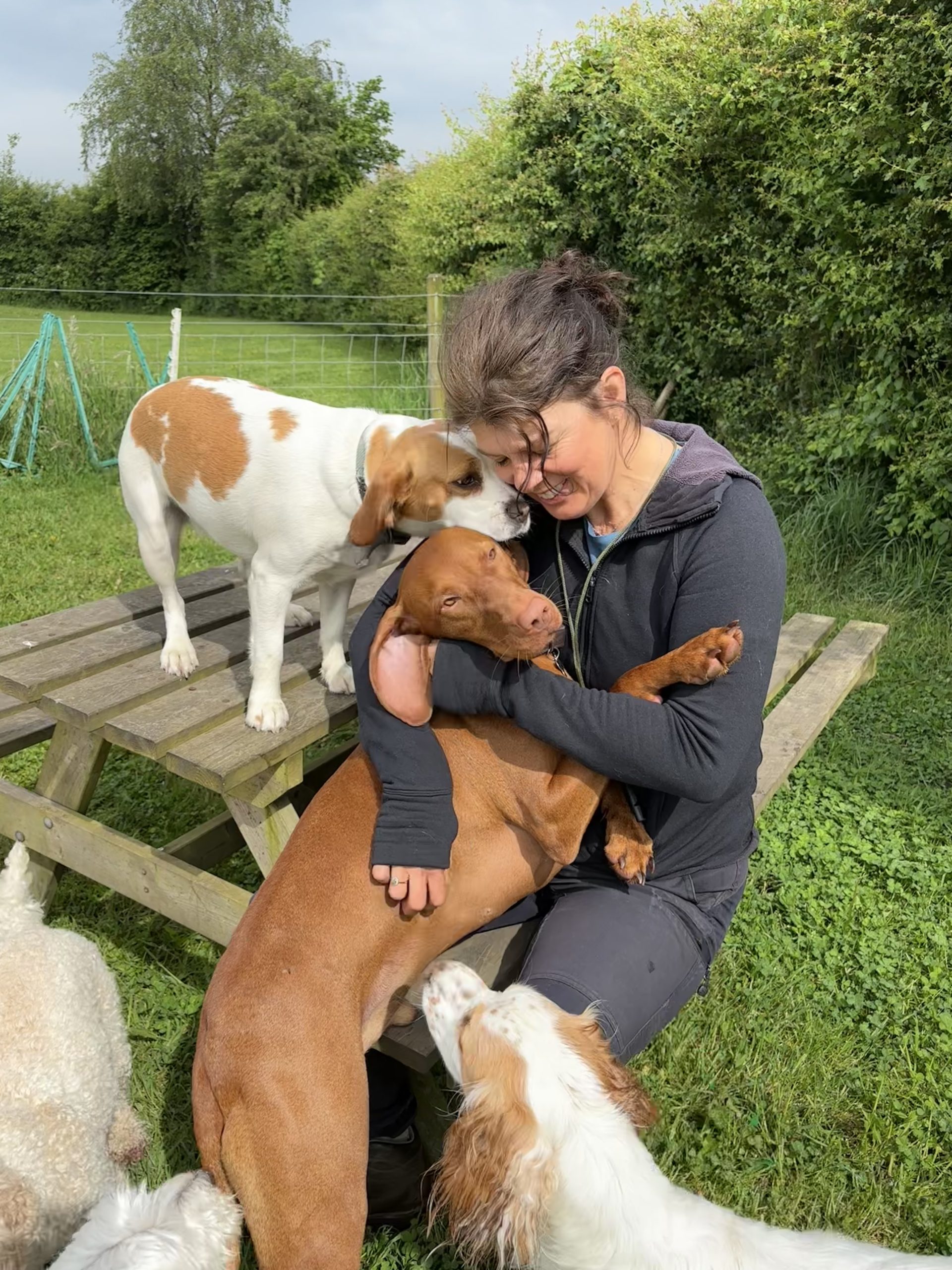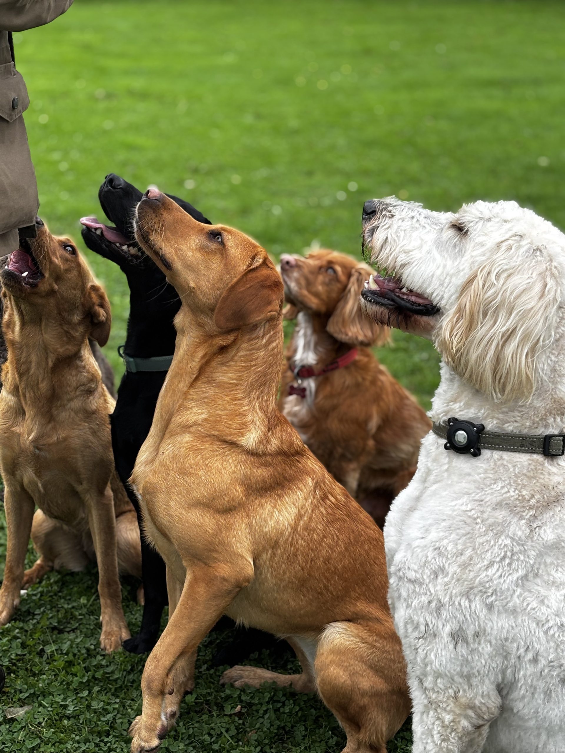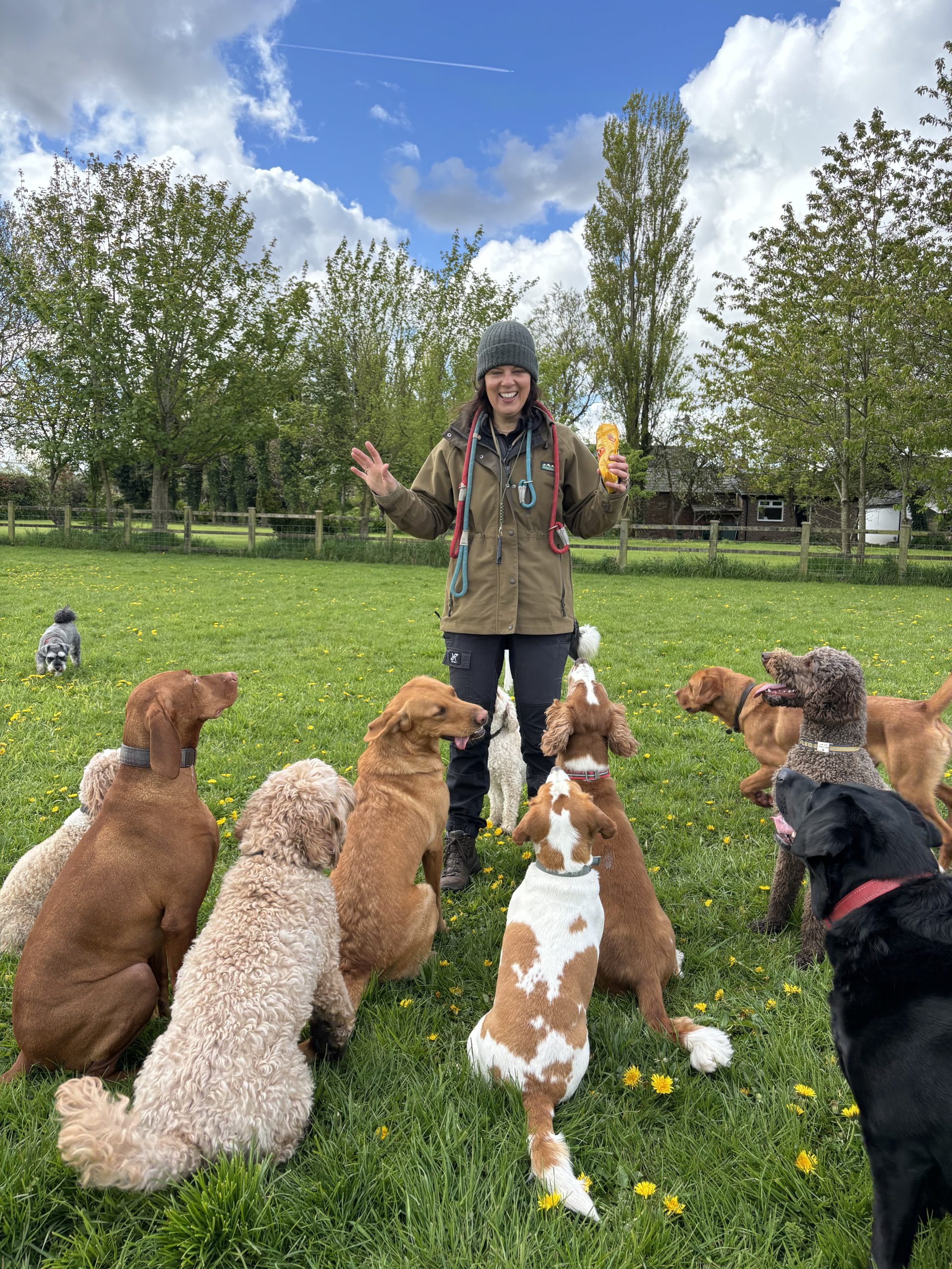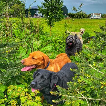 Group walks take place in our secure, private field. The dogs get an hours walk off the lead in a safe environment. It gives your dog the chance to use their natural dog instincts such as scent, hunt and explore. Group walks are structured and the dogs are taught basic commands of sit, stay, recall and leave. They are taught manners and how to behave around other dogs, on and off the lead.